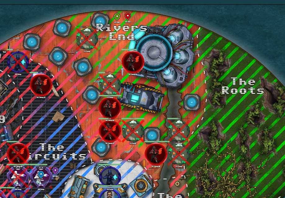 It seemed that The Underworld Collective were able to fight through the distractions in The Circuits, allowing their soldiers to launch their counter-attack against our front line. Even the random mortar strikes, the Governed launched onto The Underworld Collective didn’t stop them from reaching from The Reeds, fighting us and taking River’s End away from Dionea.