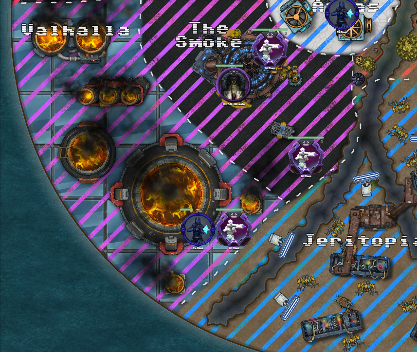 Now that all ground had been lost in the Circuits, the southern forces were ordered to redirect all their units to attack the factory sector known as “Jeritopia” to distract the Governed and draw some of their forces away from the Circuits. This began with the southern Valhalla units pushing towards the sector and attacking their guards.